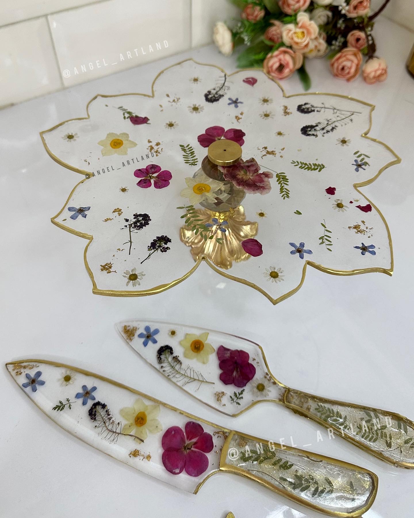 شیرینی خوری دو طبقه تمام رزین طرح بابونه