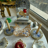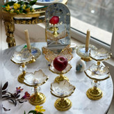 متاسفانه این کالا در حال حاضر موجود نیست. میتوانید از طریق لیست بالای صفحه، از محصولات مشابه این کالا دیدن نمایید.اینم هفتسین قلم آبی با پایه و بدون پایه، بنظرت کدوم قشنگتره؟ مشخصات سرویس هفتسین طرح قلم آبی شامل شش عدد پیاله طرح قلم آبی و جاشمعی دور کریستال با سرشعله برنجی و آینه دکوپاژ و رزین شده است. جنس پایه ها و متریال درجه یک و بسیار باکیفیت هستش.