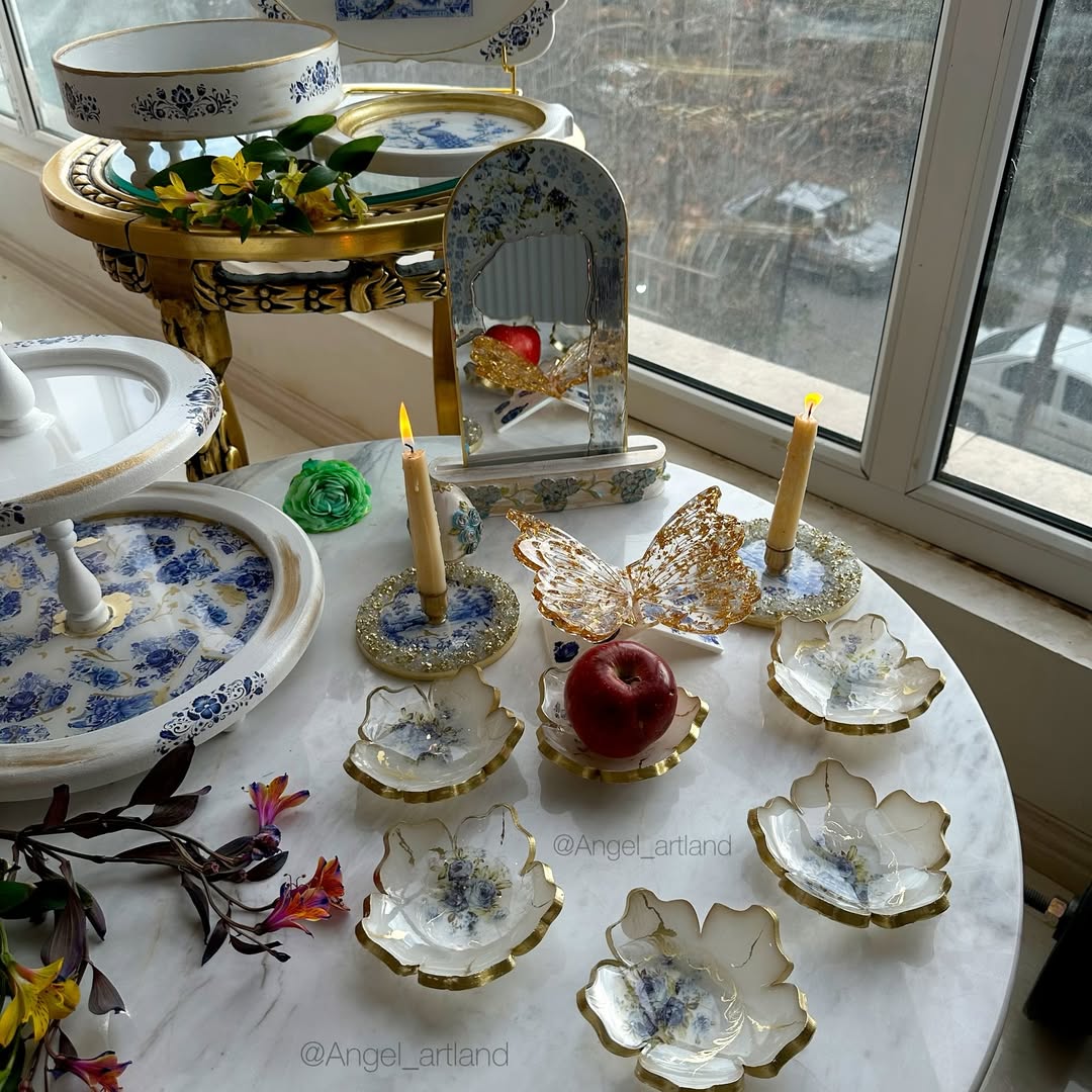 متاسفانه این کالا در حال حاضر موجود نیست. میتوانید از طریق لیست بالای صفحه، از محصولات مشابه این کالا دیدن نمایید.اینم هفتسین قلم آبی با پایه و بدون پایه، بنظرت کدوم قشنگتره؟ مشخصات سرویس هفتسین طرح قلم آبی شامل شش عدد پیاله طرح قلم آبی و جاشمعی دور کریستال با سرشعله برنجی و آینه دکوپاژ و رزین شده است. جنس پایه ها و متریال درجه یک و بسیار باکیفیت هستش.