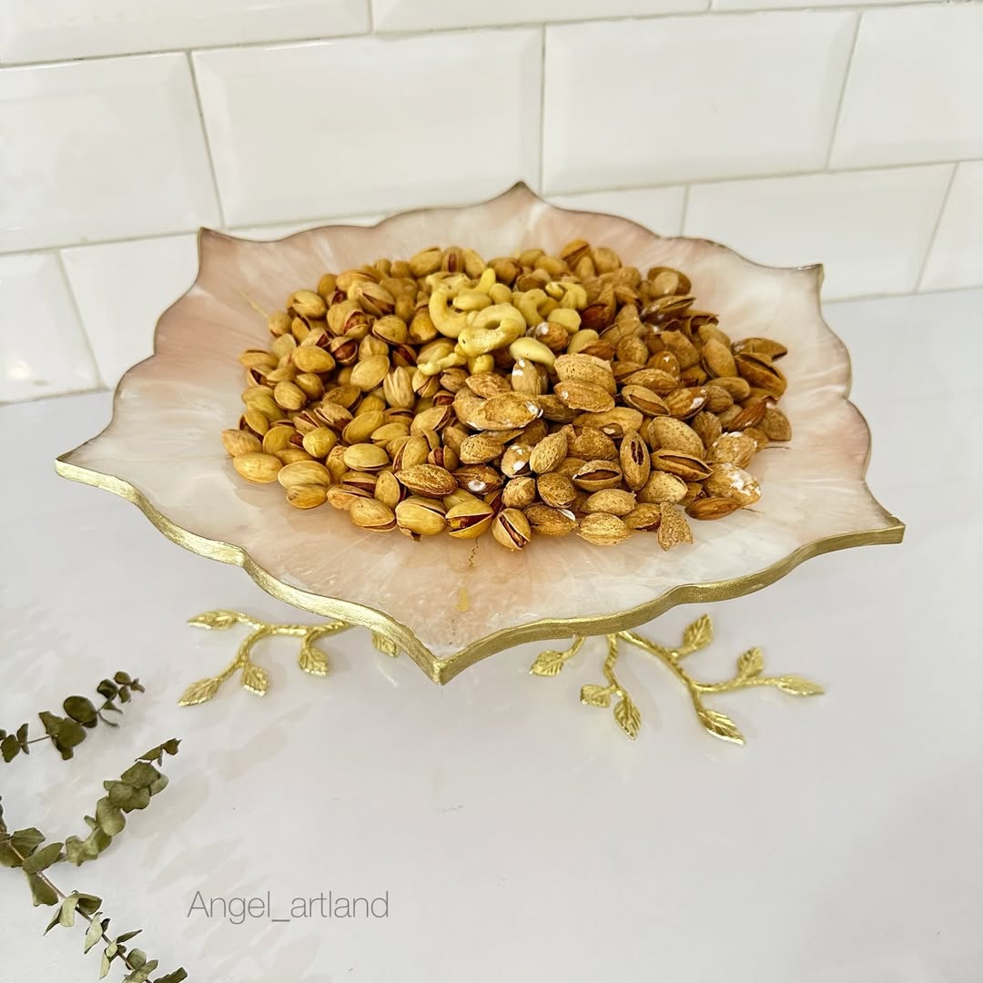 ظرف آجیل خوری/شیرینی خوری رزین با پایه برنجی