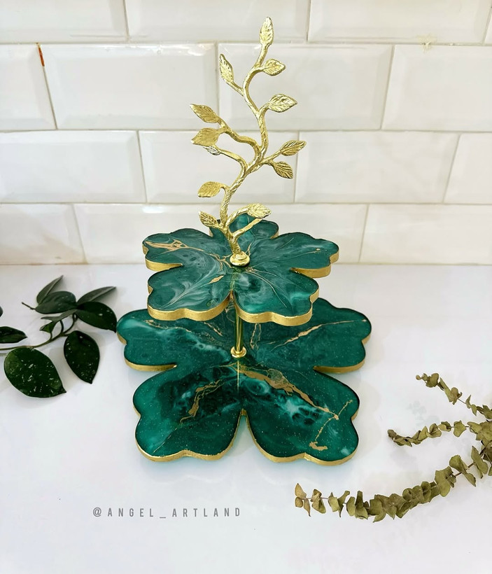 شیرینی خوری دو طبقه تمام رزین رنگ سبز