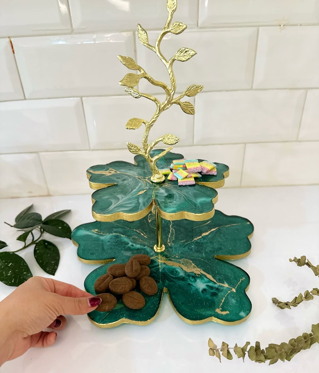 شیرینی خوری دو طبقه تمام رزین رنگ سبز