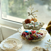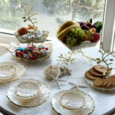 نیم ست صدفی سفید با برق ورق طلا